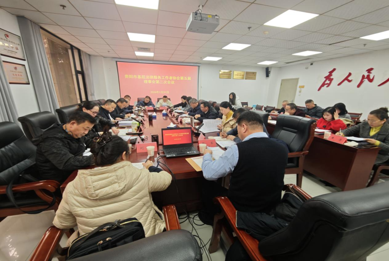 2026年1月31日下午,贵阳市基层法律服务工作者协会第五届理事会第二次会议在市司法局党委会议室召开。会议由协会会长李成钢主持,协会全体理事出席会议,全体监事、秘书长及三个专门委员会全体成员列席会议。